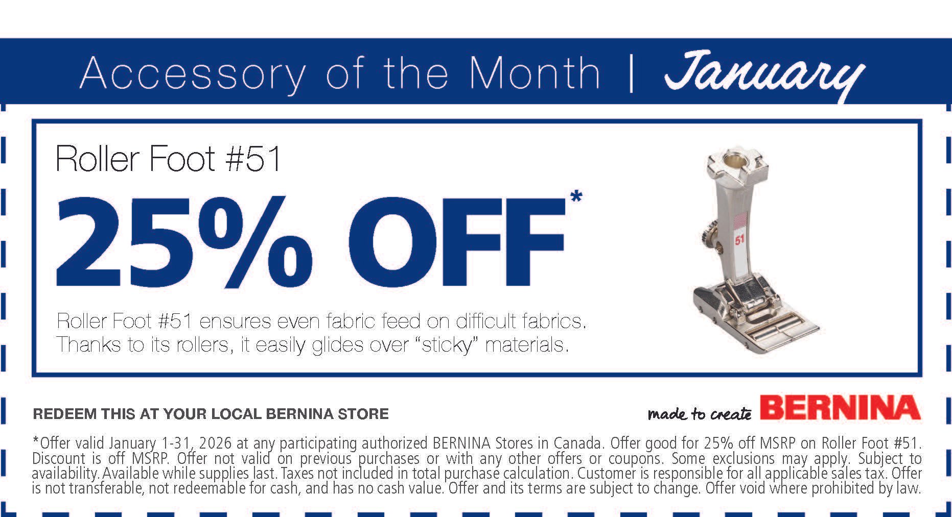 Bernina foot of the Month for January is the Bernina Foot #51 Roller Foot Save 25% off